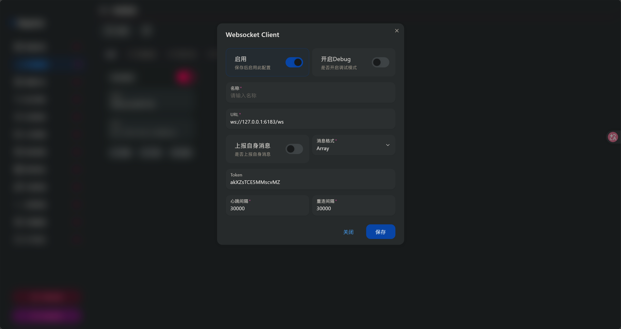 After successful login, configure the WebSocket connection that AstrBot will use: