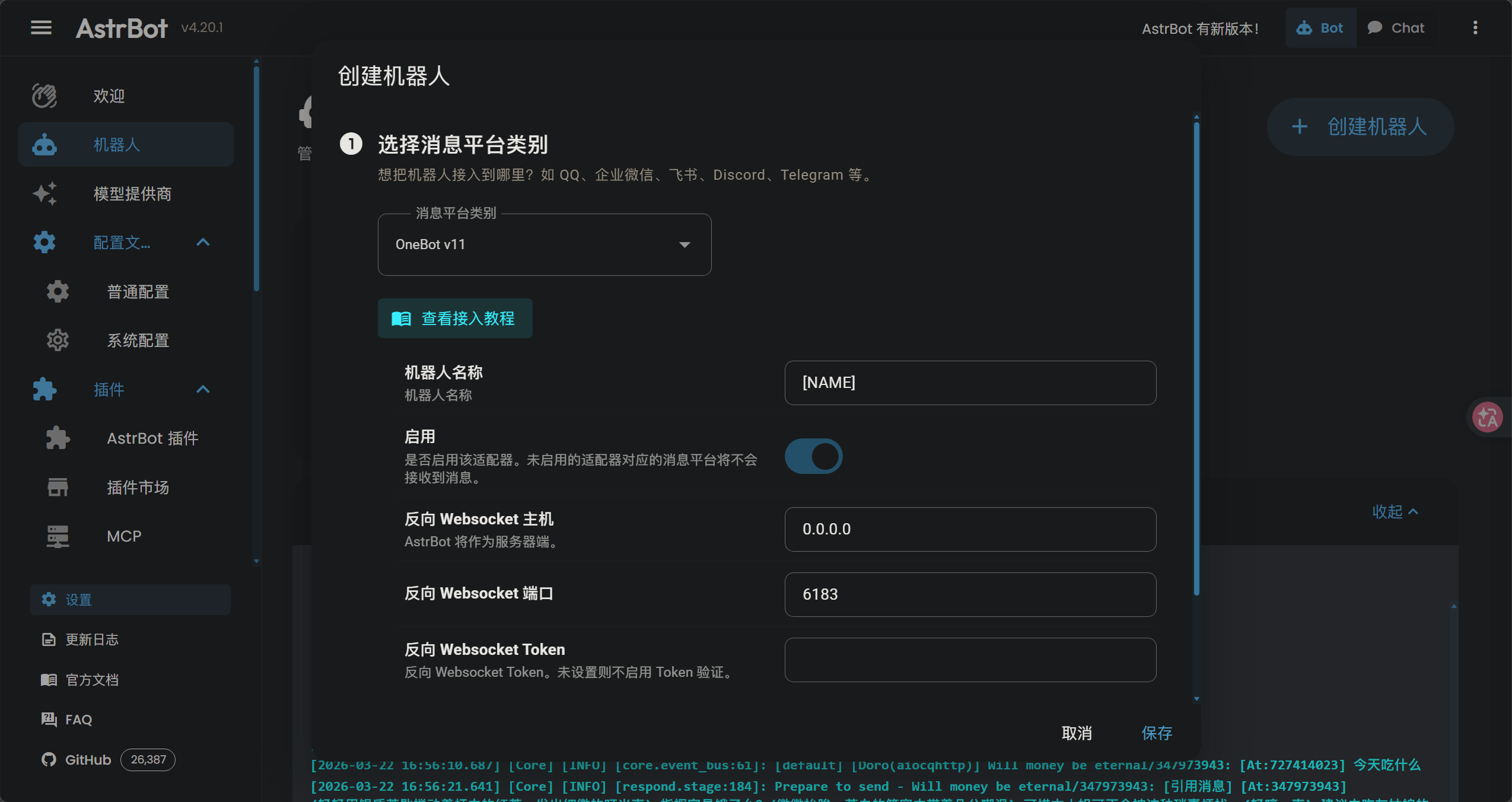 AstrBot LLM orchestrator Platform: QQ (OneBot V11)